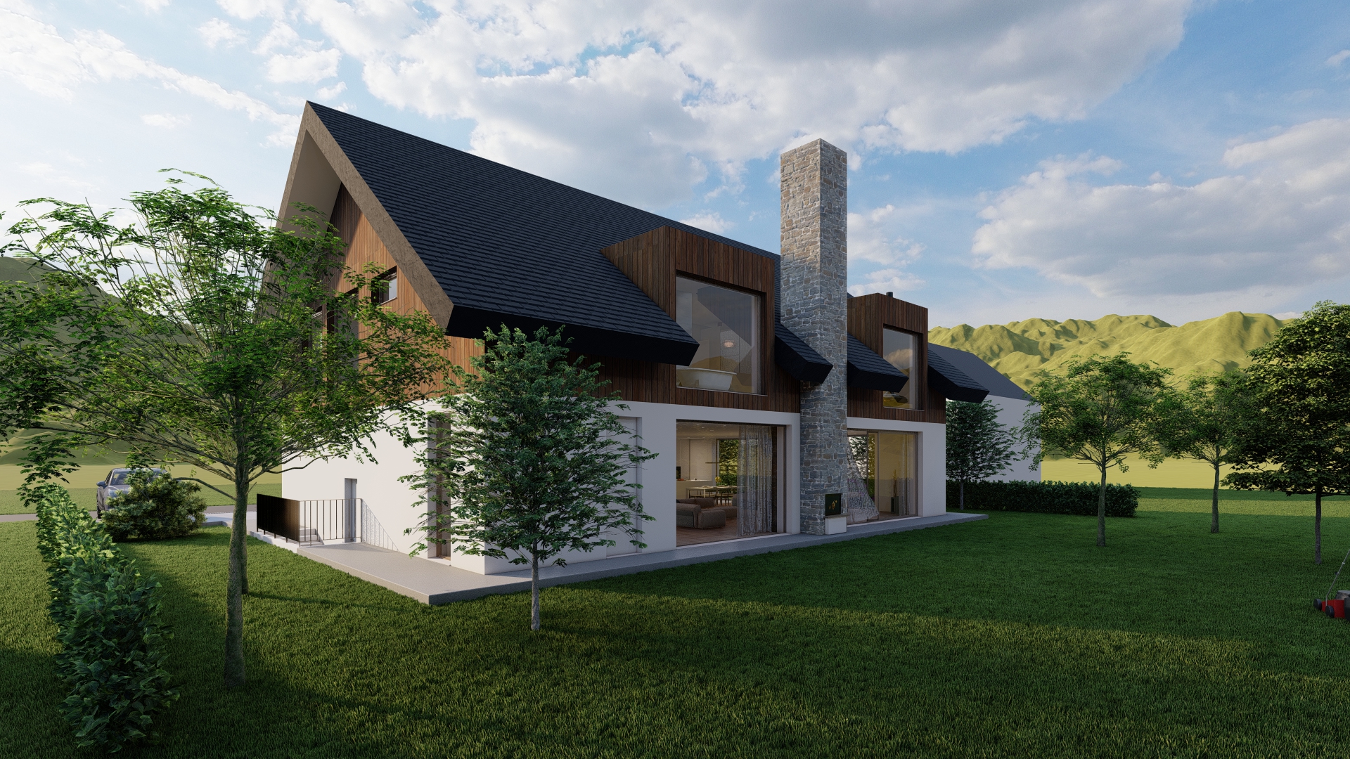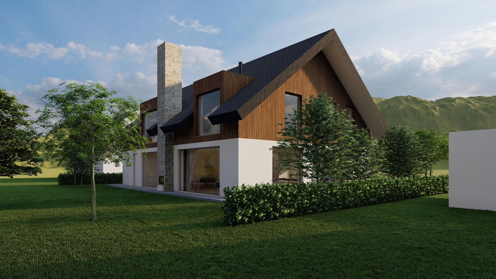 Za stranko smo poiskali zemljišče, opravili nakup zemljišča, pripravili idejne zasnove objekta ter interiorja, priprava dokumentacije za gradbeno dovoljenje, izvedba na ključ in vodenje celotne investicije, izdelava celotne notranje opreme. Gradnja je v teku!